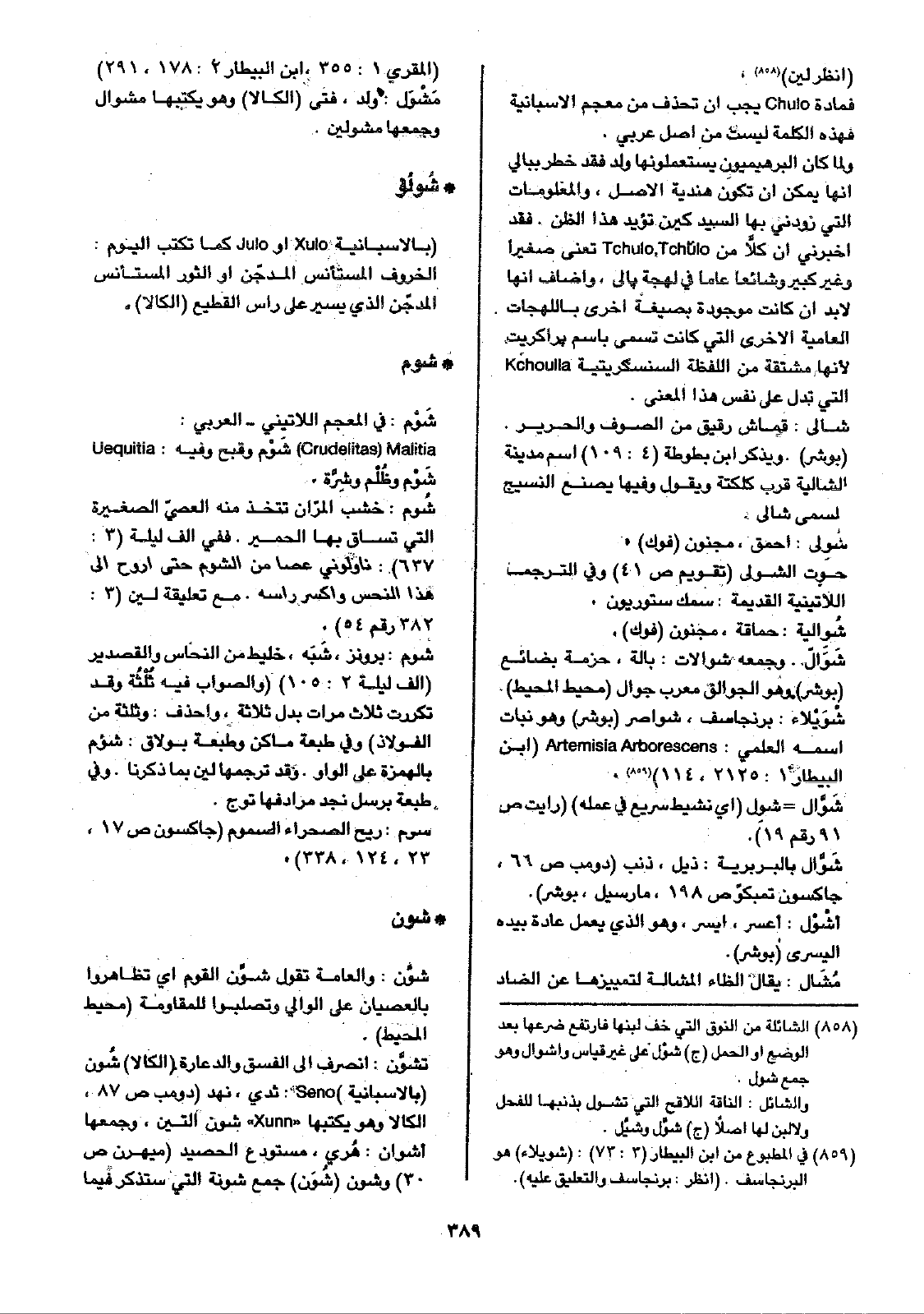 تشوَّن: انصرف إلى الفسق والدعارة (الكالا) شُون (بالأسبانية) Seno: ثدي، نهد (دومب ص87، الكالا وهو يكتبها (( Xunn)) شون التين، وجمعها أشوان: هُري، مستودع الحصيد (ميهرن ص30) وشون (شُوَن) جمع شونة التي ستذكر فيما