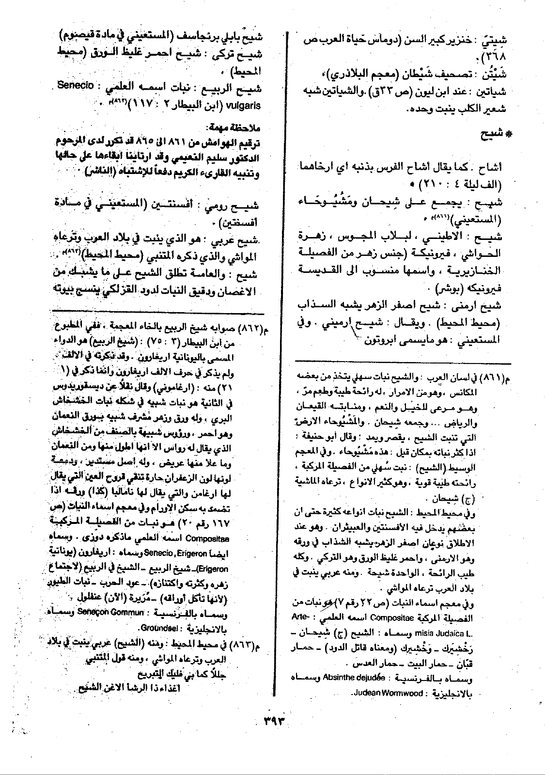 شيح الربيع: نبات اسمه العلمي: Senecio vulgaris ( ابن البيطار 2: 117).