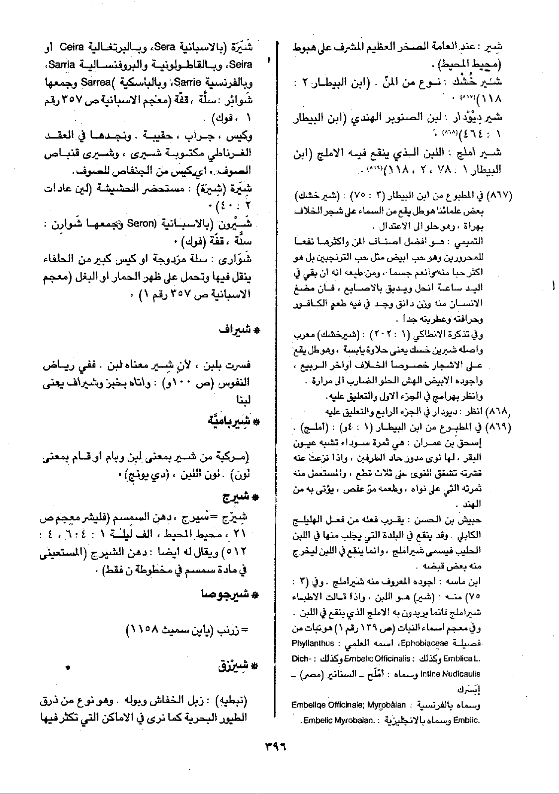 • شيرج: شِيرج = سيرج، دهن السمسم (فليشر معجم ص21، محيط المحيط، ألف ليلة 1: 604، 4: 512) ويقال له أيضاً: دهن الشيرج (المستعيني في مادة سمسم في مخطوطة ن فقط).