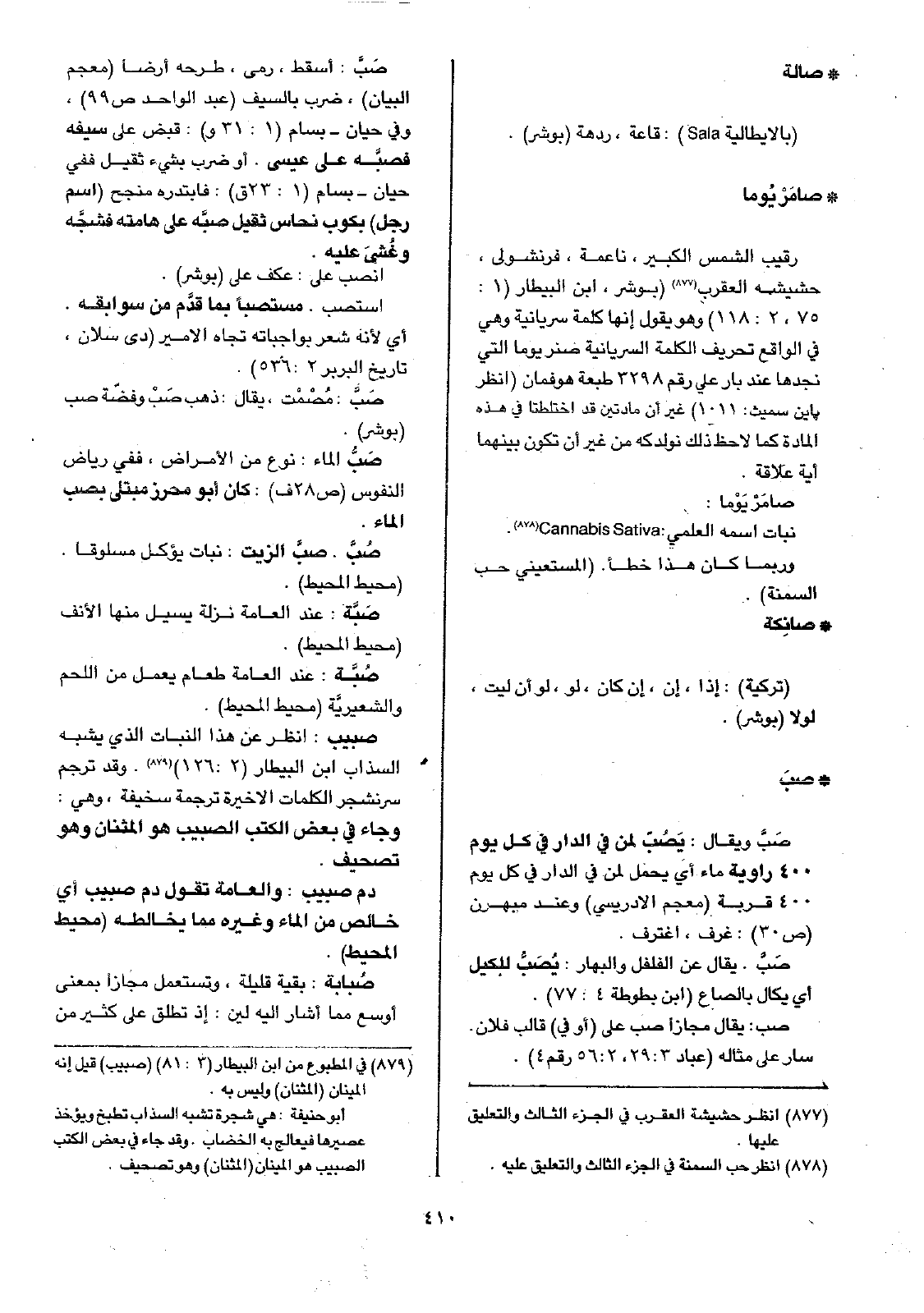 صبيب: انظر عن هذا النبات الذي يشبه السذاب ابن البيطار (2: 126). وقد ترجم سرنجشر الكلمات الأخيرة ترجمة سخيفة، وهي: وجاء في بعض الكتب الصبيب هو المثنان وهو تصحيف.