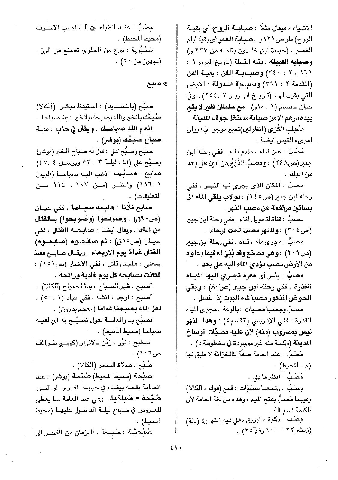 مصبّ: المكان الذي يجري فيه النهر، ففي رحلة ابن جبير (ص245): دولاب يلقي الماء إلى بساتين مرتفعة عن مصب النهر.