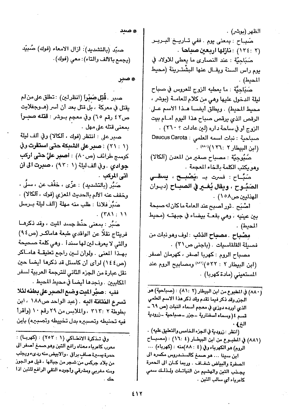 صباحية: نبات اسمه العلمي: Daucus Carota ( ابن البيطار 2: 126).
