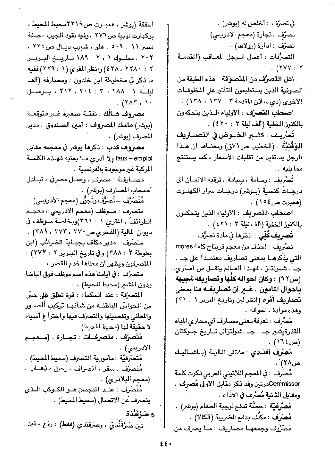 مصروف كذب: ذكرها بوشر في معجمه مقابل faux-emploi ولا أدري ما يعنيه فهذه الكلمة المركبة غير موجودة بالفرنسية.