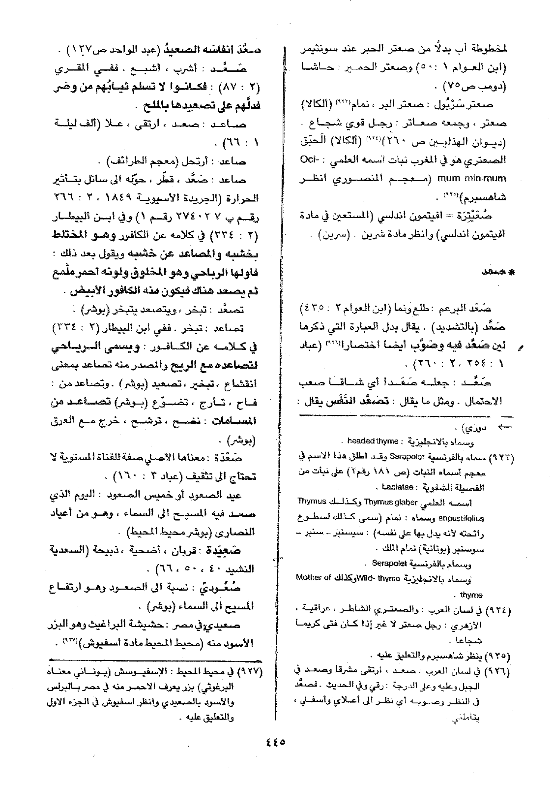 صعتر سَرْبُول: صعتر البر، نمام (ألكالا) صعتر، وجمعه صعاتر: رجل قوي شجاع. (ديوان الهذليين ص260) (ألكالا) (الَحبَق الصعتري هو في المغرب نبات اسمه العلمي: Ocimum minimum ( معجم المنصوري انظر شاهسبرم).