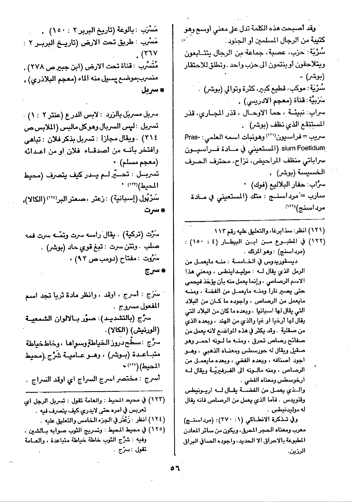 سارب = مرداسنج: متك (المستعيني في مادة مرداسنج) مَسْرَب: بالوعة (تاريخ البربر 2: 150).