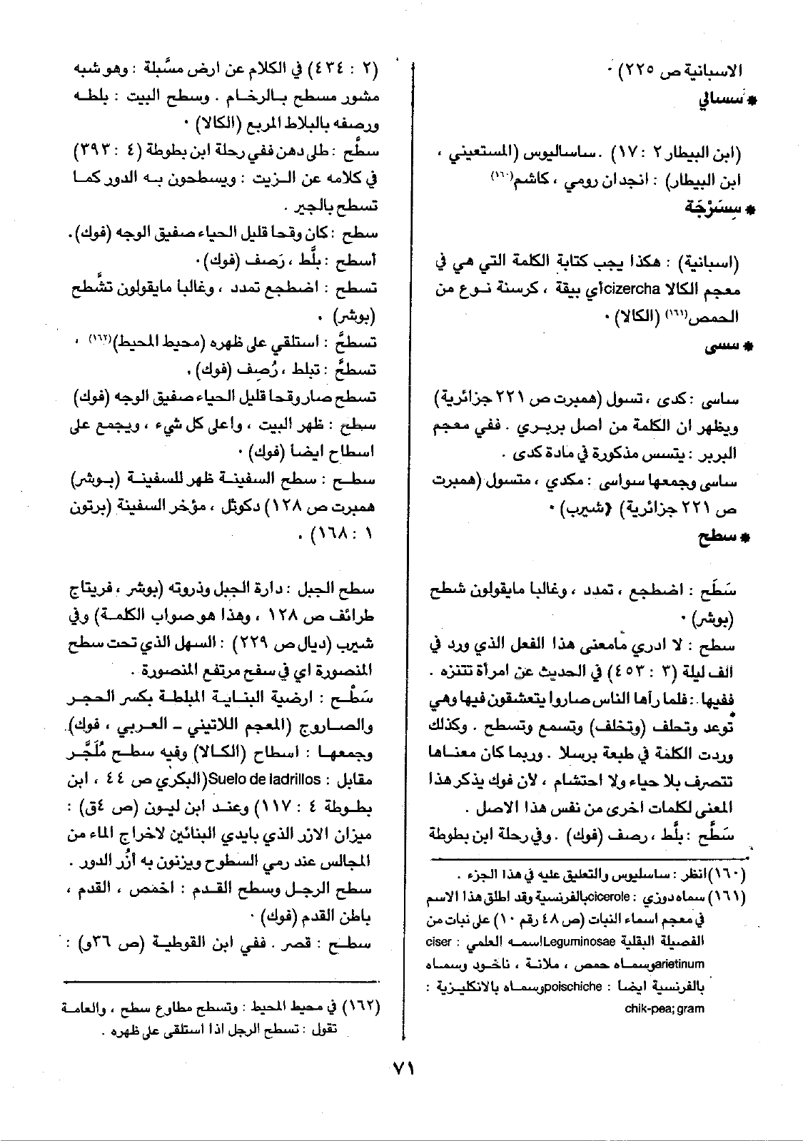 • سِسَرْجَة: (أسبانية): هكذا يجب كتابة الكلمة التي هي في معجم الكالا cizercha أي بيقة، كرسنة نوع من الحمص (الكالا).