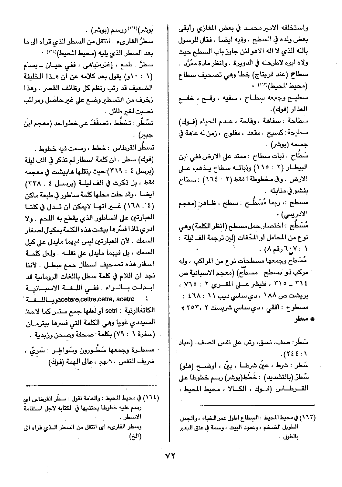 • سطر: سَطَر: صف، نسق، رتب على نفس الصف. (عباد 1: 244).