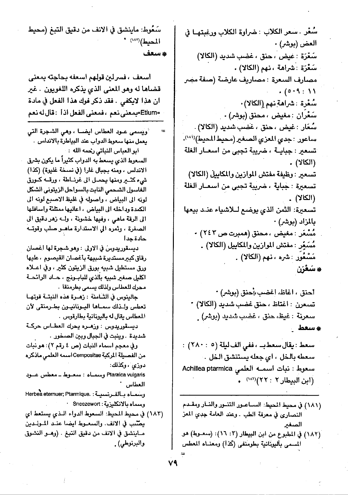 سعوط: نبات اسمه العلمي Achillea ptarmica ( ابن البيطار 2: 22).