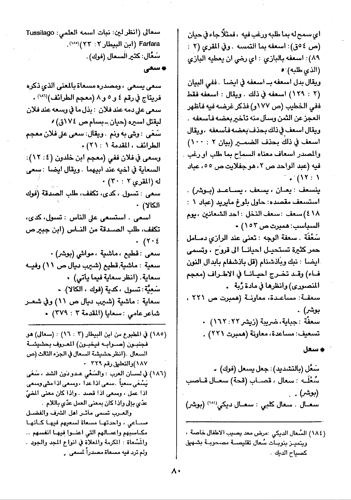 سعال. سعال كلبي: سعال ديكي (بوشر) سعالي (انظر لين: نبات اسمه العلمي: Tussilago Farfara ( ابن البيطار 2: 23).