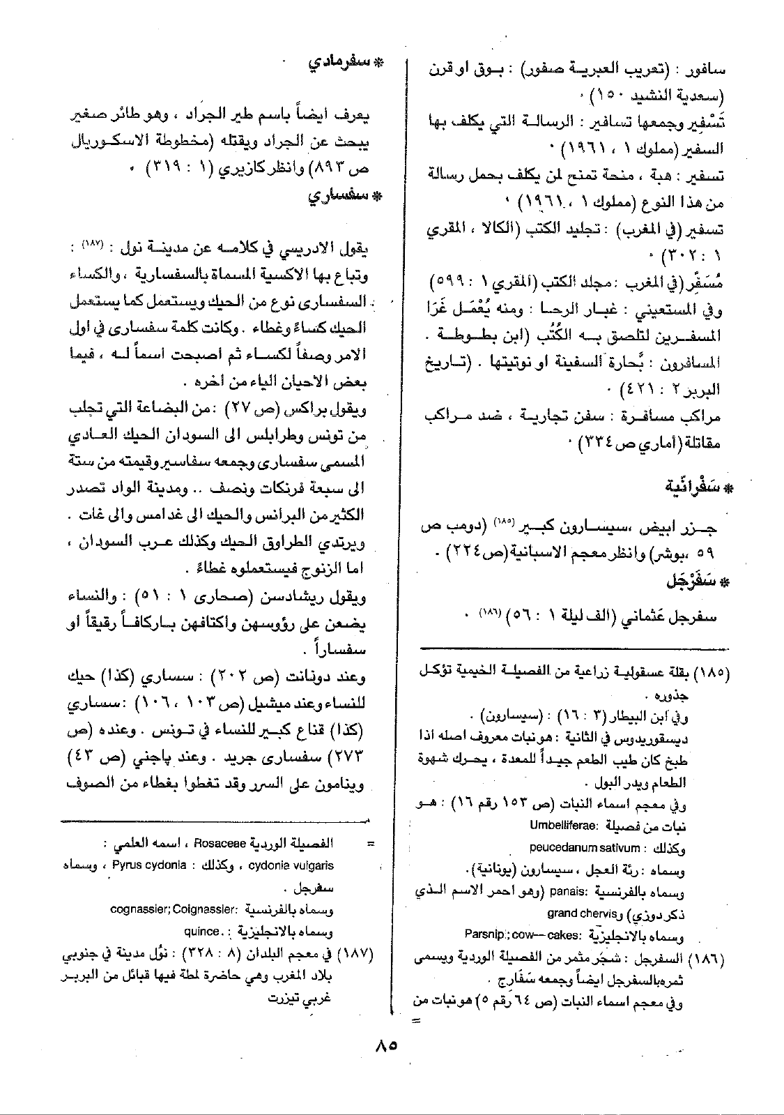 • سَفْرانّية: جزر ابيض سيسارون كبير (دومب ص59، بوشر) وانظر معجم الأسبانية (ص224).
