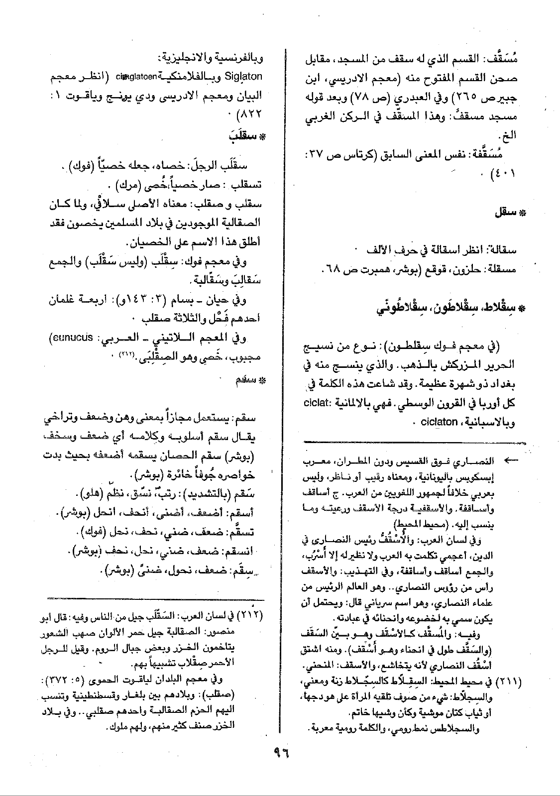وفي المعجم اللاتيني - العربي: eunucus) مجبوب، خَصى وهو الصِقْلِبَي. .
