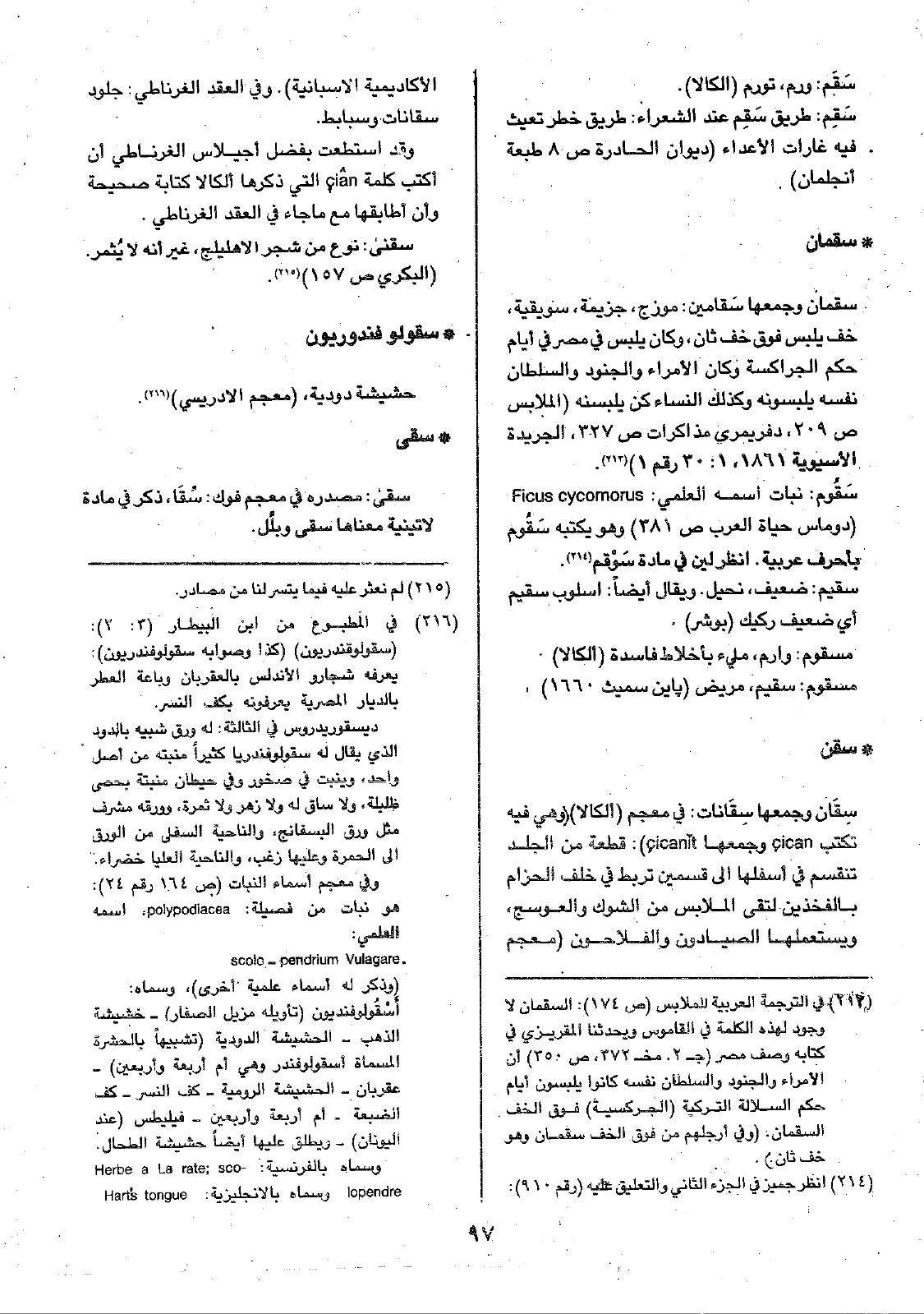 سَقُوم: نبات اسمه العلمي: Ficus cycomorus ( دوماس حياة العرب ص381) وهو يكتبه سَقُوم بأحرف عربية. انظر لين في مادة سَوْقم.