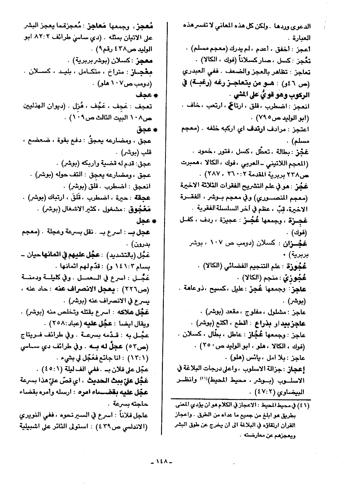 عاجز: وجمعها عُجَّاز: عاطل، بطّال، كسلان. (فوك، الكالا، هلو، أبو الوليد ص250).