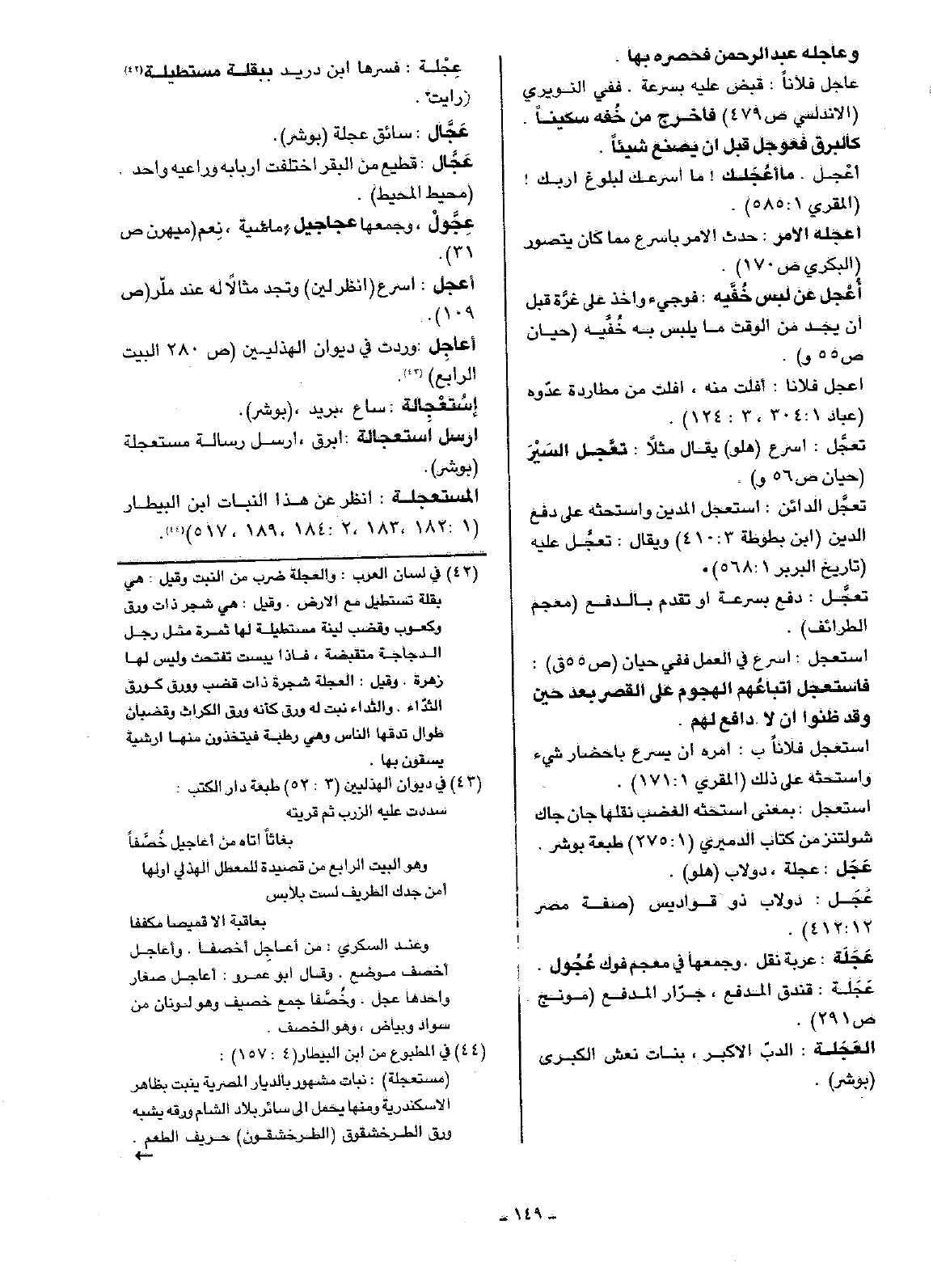 المستعجلة: انظر عن هذا النبات ابن البيطار (1: 182، 183،2: 184، 189، 517).