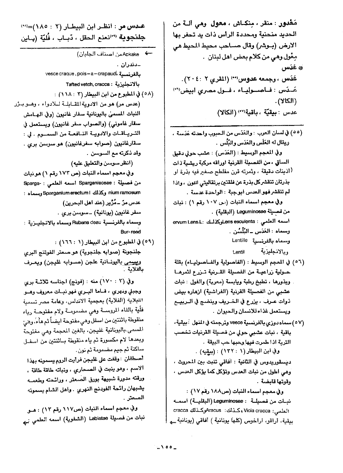 • عَدَس: عَدَس، وجمعه عدوس (المقري 2: 204).