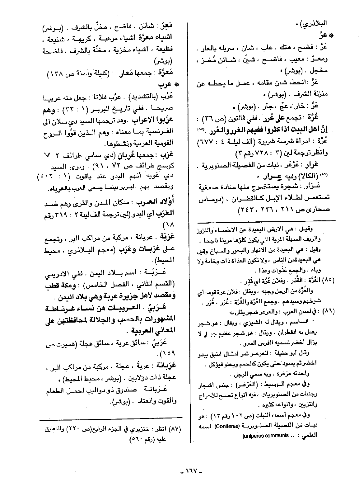 عَرَب: جمعها عُربان (دي ساسي طرائف 2: 7 كوسج طرائف ص72، 91). ويرى السيد دي غويه أنهم البدو عند ياقوت (1: 502) ويقصد بهم البربر بينما يسمى العرب بالعرباء.