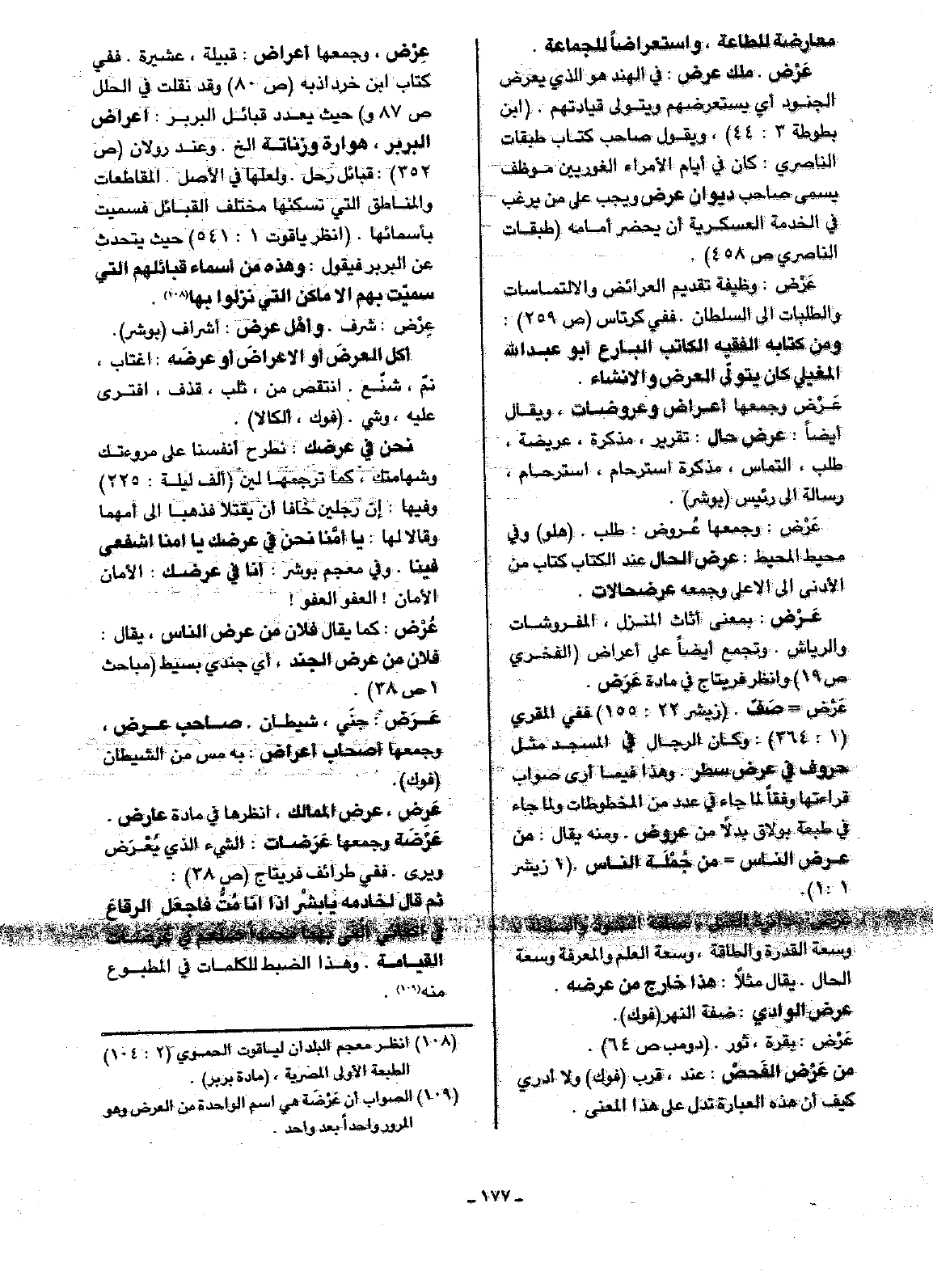 عِرْض، وجمعها أعراض: قبيلة، عشيرة. ففي كتاب ابن خرداذبه (ص80) وقد نقلت في الحلل ص87 و) حيث يعدد قبائل البربر: أعراض البربر، هوارة وزناتة الخ، وعند رولان (ص352): قبائل رحل. ولعلها في الأصل. المقاطعات والمناطق التي تسكنها مختلف القبائل فسميت بأسمائها. (أنظر ياقوت 1: 541) حيث يتحدث عن البربر فيقول: وهذه من أسماء قبائلهم التي سميّت بهم الأماكن التي نزلوا بها.