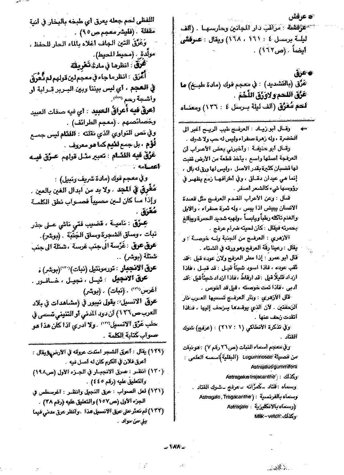 لحم مُعَرَّق (ألف ليلة برسل 4: 136) ومعناه اللفظي لجم جعله يعرق أي طبخه بالبخار في أنية مقفلة. (فليشر معجم ص95).