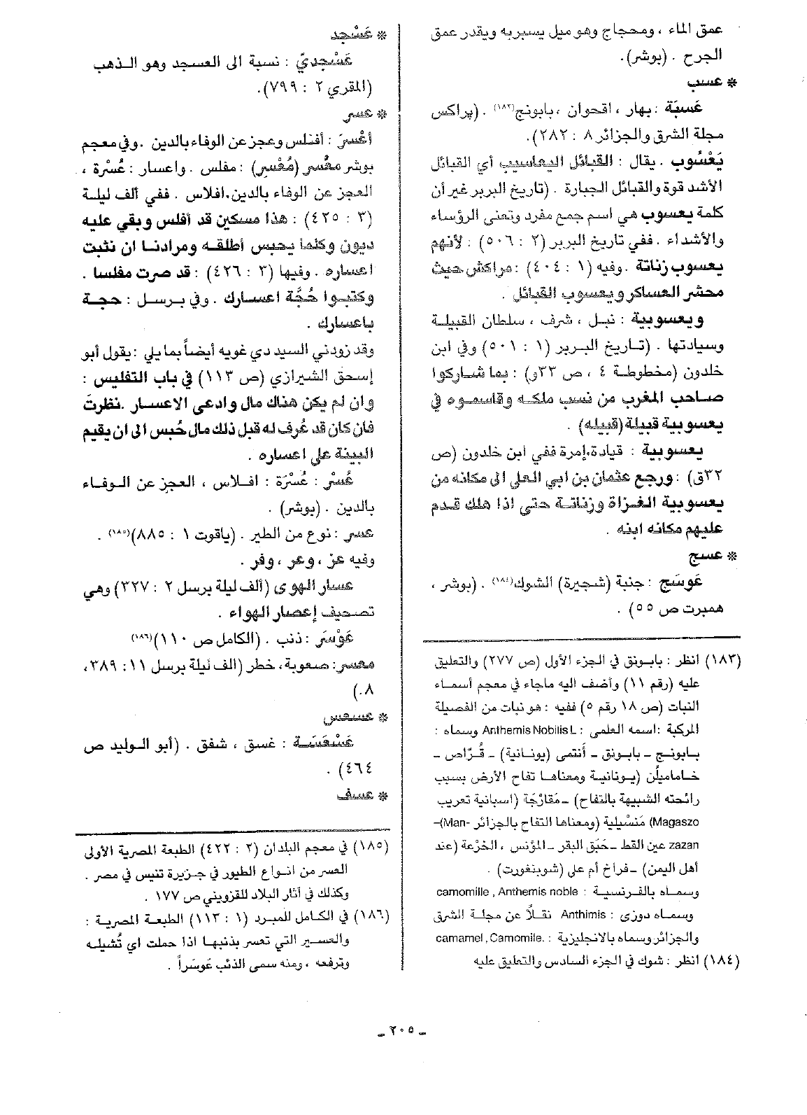 • عسب: عَسبَة: بهار، أقحوان، بابونج. (براكس مجلة الشرق والجزائر 8: 282).