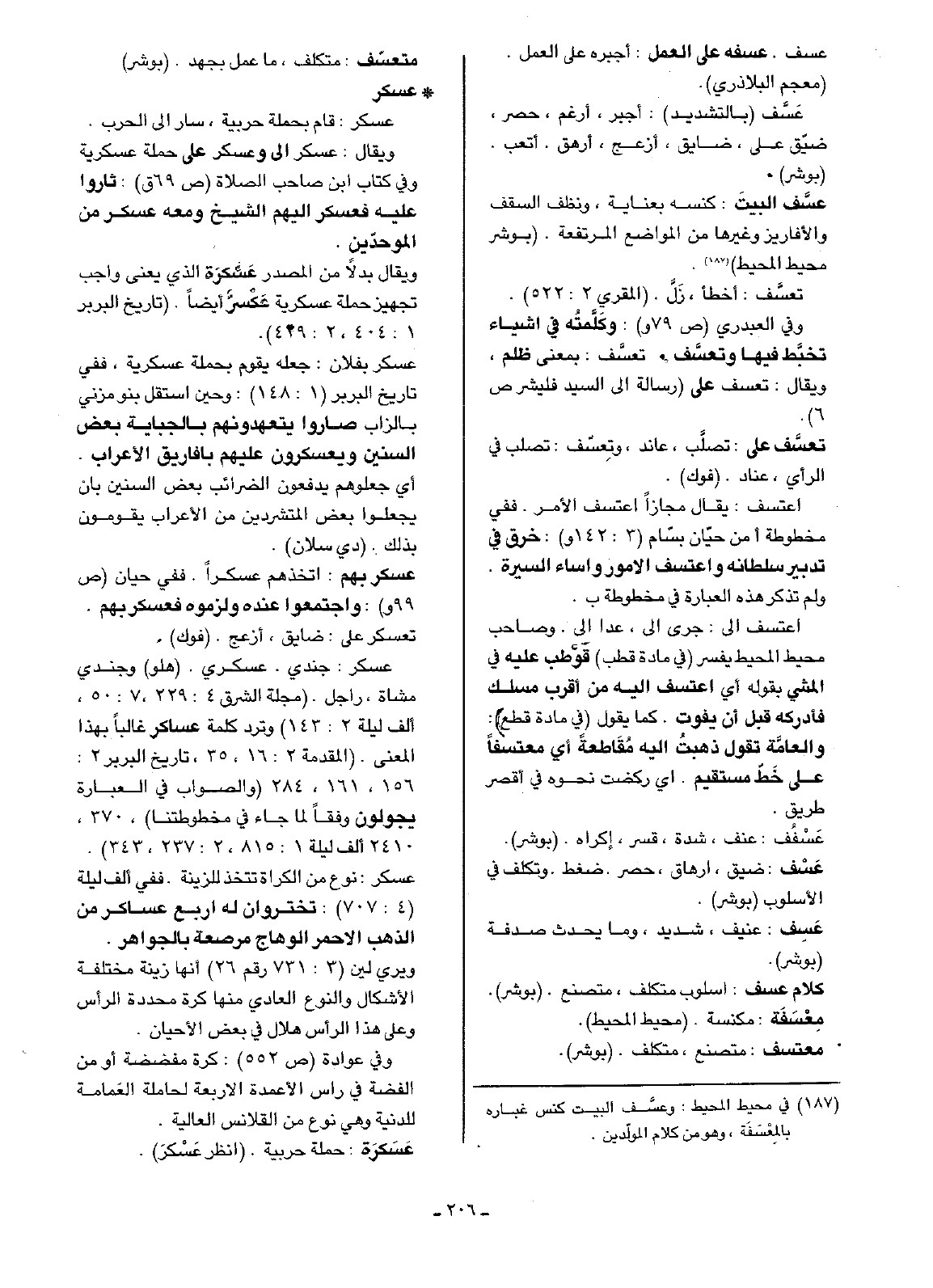 وفي العبدري (ص79 و): وكَلَّمتُه في اشياء تخبَّط فيها وتعسَّف. تعسَّف: بمعنى ظلم، ويقال: تعسف على (رسالة إلى السيد فليشر ص6).