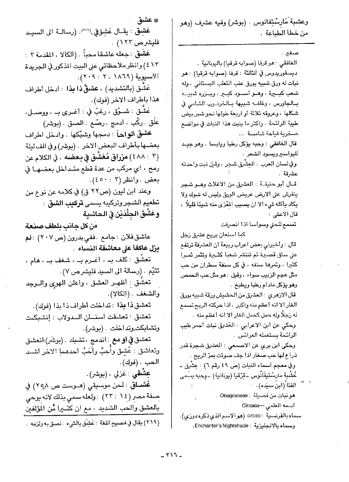 وعشبة مَارِسْتِفانوس. (بوشر) وفيه عشرف (وهو من خطأ الطباعة.