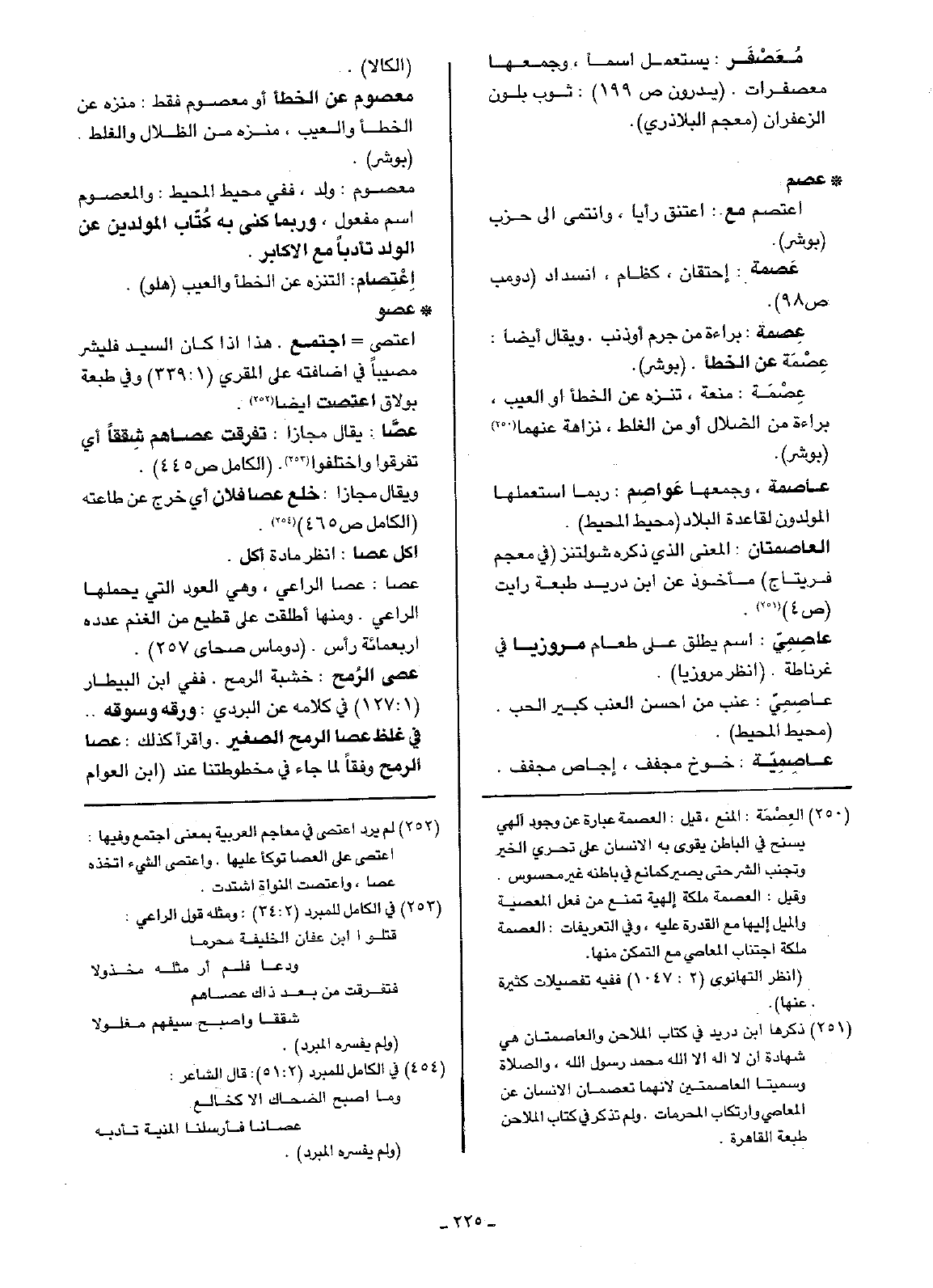 • عصم: اعتصم مع: اعتنق رأياً، وانتمى إلى حزب (بوشر).