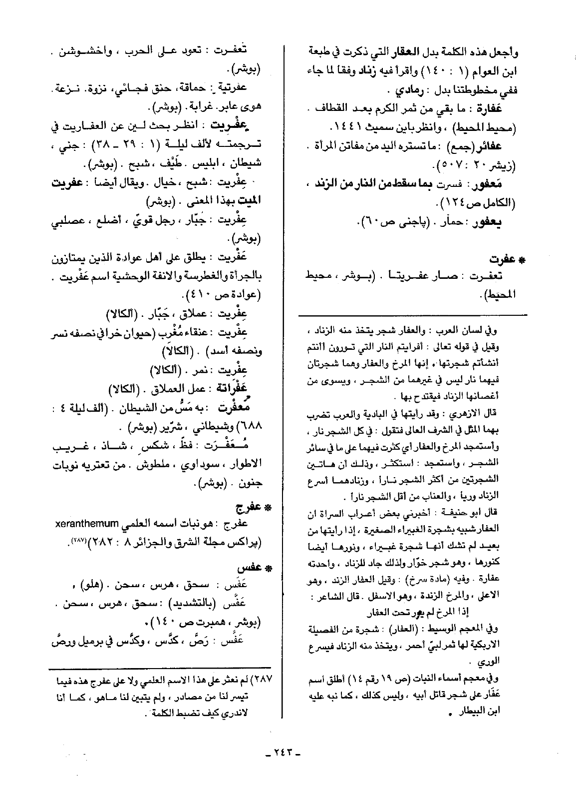 • عفرج: عفرج: هو نبات اسمه العلمي xeranthemum ( براكس مجلة الشرق والجزائر 8: 282).