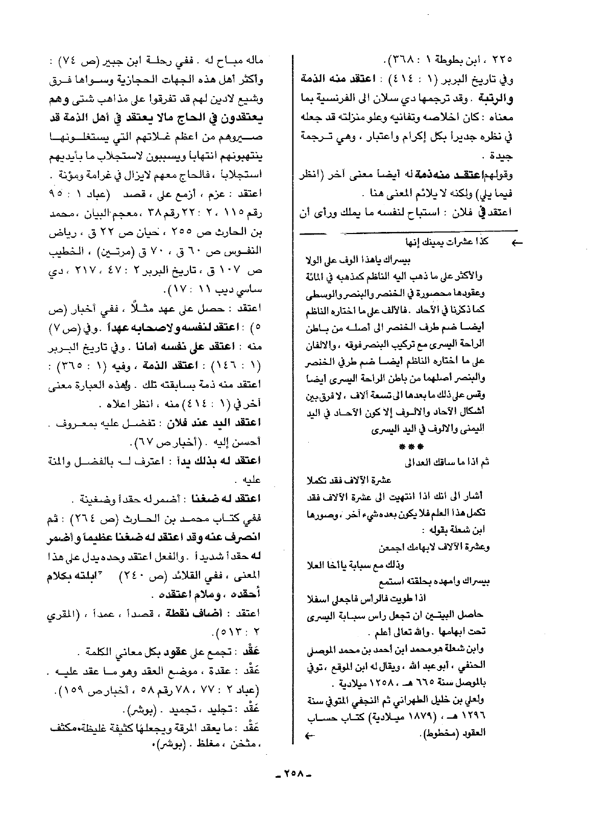 وفي تاريخ البربر (1: 414): اعتقد منه الذمة والرتبة. وقد ترجمها دي سلان إلى الفرنسية بما معناه: كان إخلاصه وتفانيه وعلو منزلته قد جعله في نظره جديرا بكل إكرام واعتبار، وهي ترجمة جيدة.