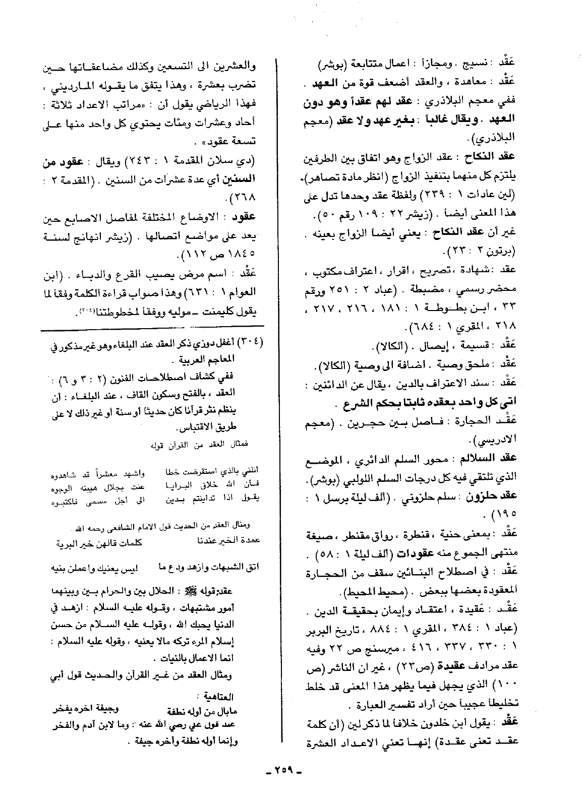 (عباد 1: 384، المقري 1: 884، تاريخ البربر 1: 330، 337، 416، ميرسنج ص22 وفيه عقد مرادف عقيدة (ص23)، غير أن الناشر (ص100) الذي يجهل فيما يظهر هذا المعنى قد خلط تخليطاً عجيباً حين أراد تفسير العبارة.