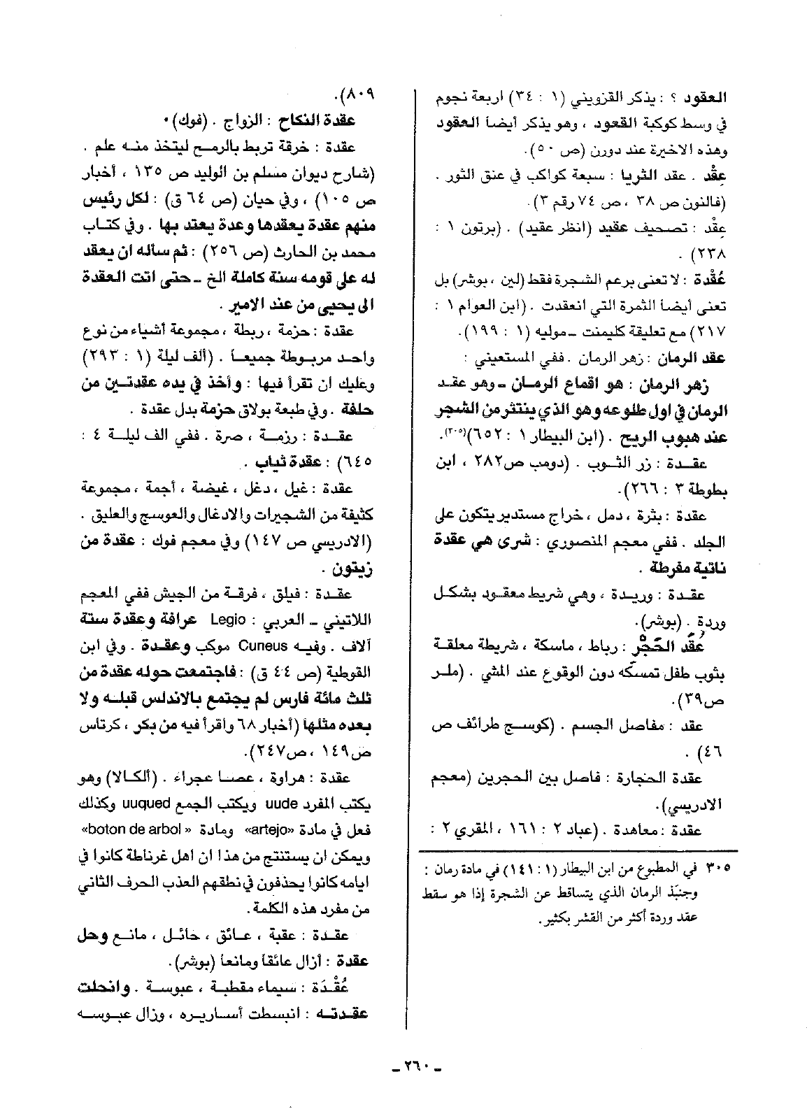 عُقْدة: لا تعني برعم الشجرة فقط (لين، بوشر) بل تعني أيضاً الثمرة التي انعقدت. (ابن العوام 1: 217) مع تعليقة كليمنت- موليه (1: 199).