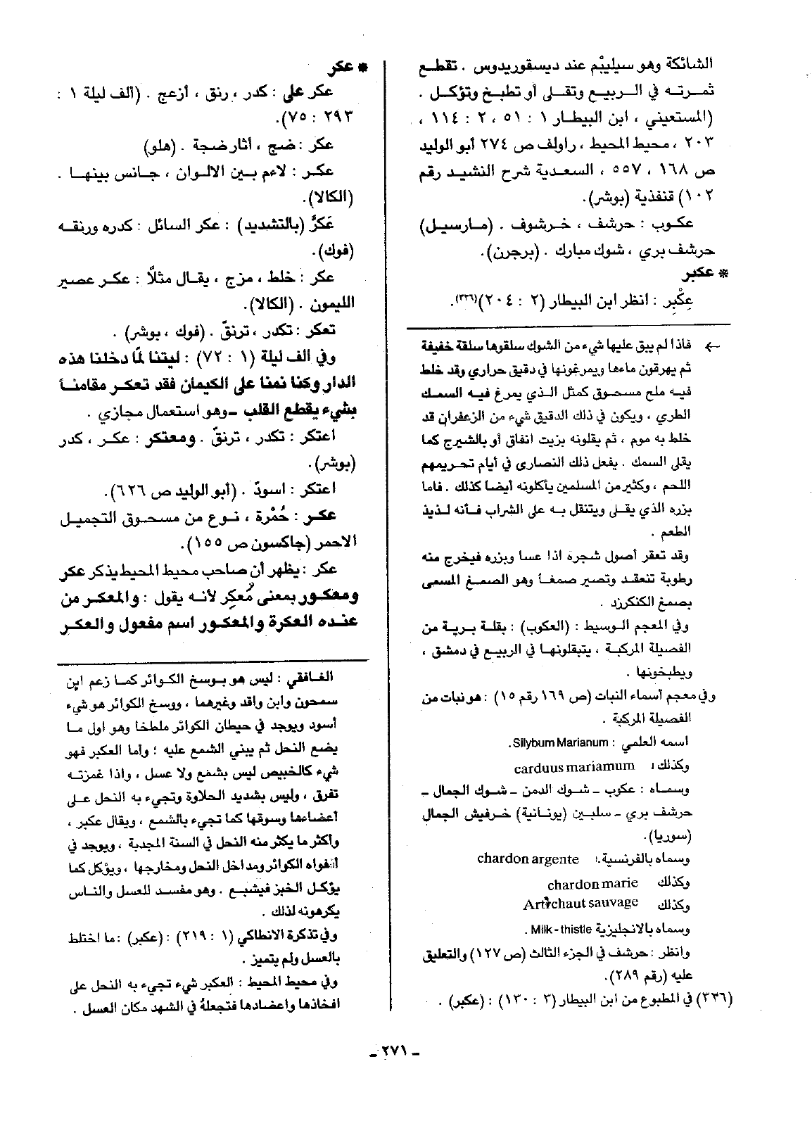• عكبر: عِكْبِر: انظر ابن البيطار (2: 204).