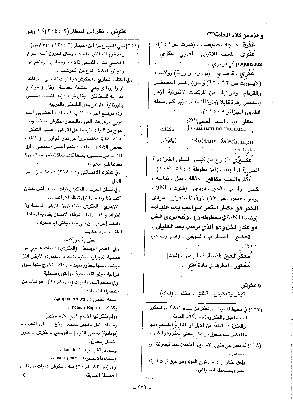 عِكرِش: انظر ابن البيطار (2: ة204) وهو