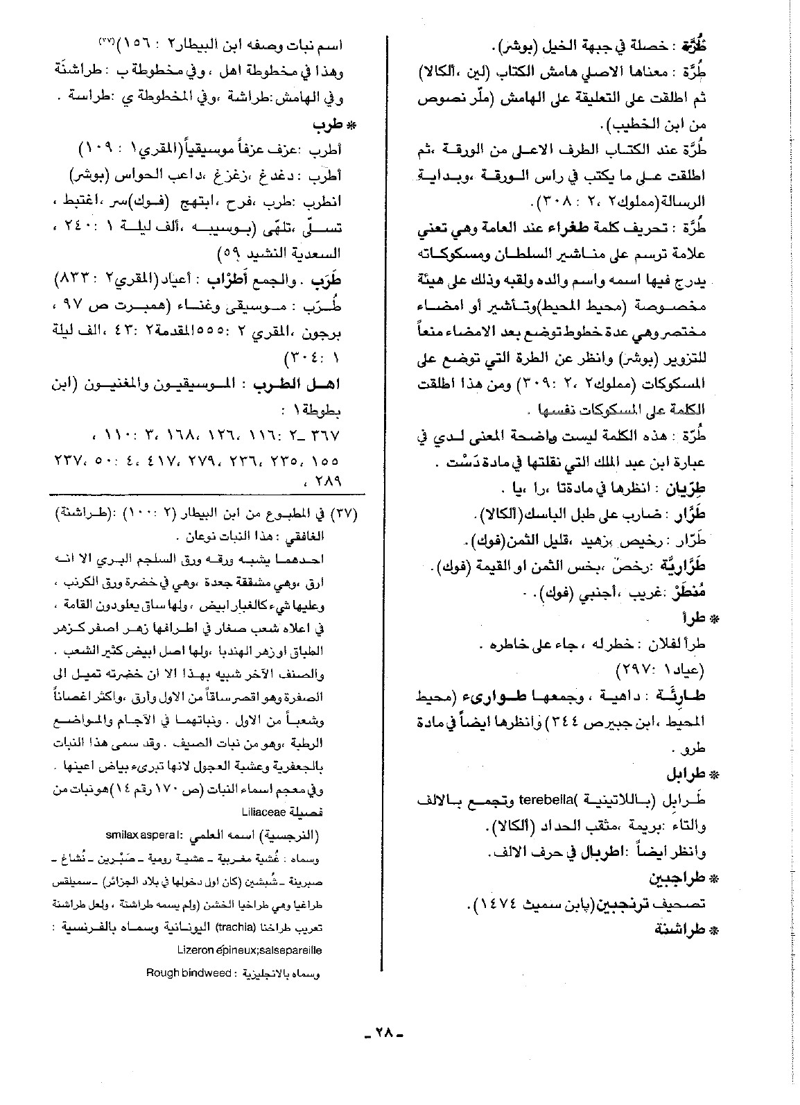 طُرَّة: معناها الأصلي هامش الكتاب (لين، ألكالا) ثم أطلقت على التعليقة على الهامش (ملّر نصوص من ابن الخطيب).