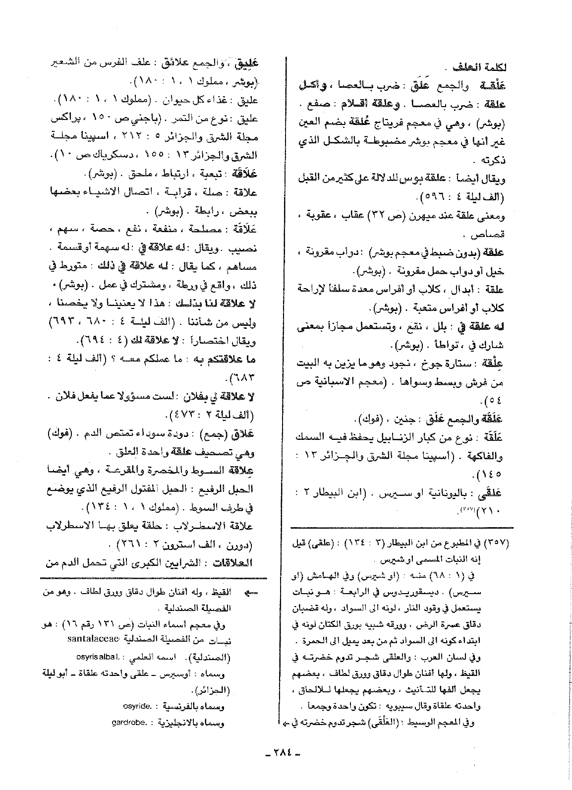 ومعنى علقة عند ميهرن (ص32) عقاب، عقوبة، قصاص.