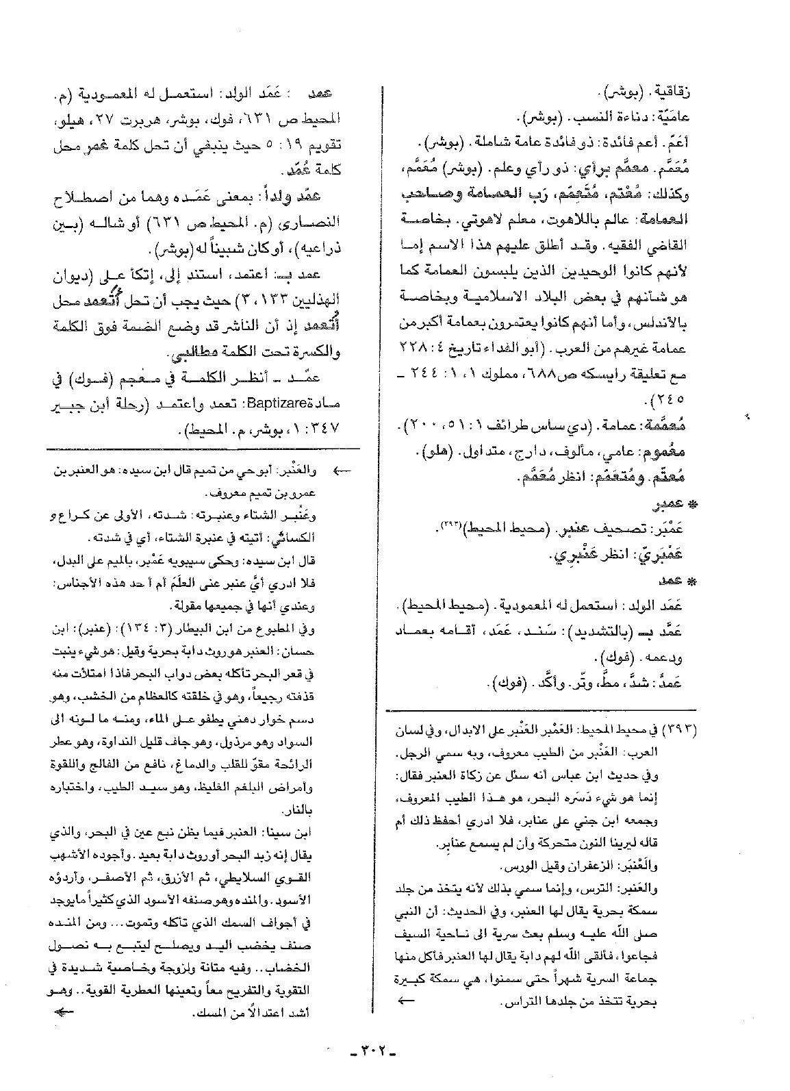 عمد ب: اعتمد، استند إلى، اتكأ على (ديوان الهذليين 133، 3) حيث يجب أن تحل أتَعمد محل أتُعمد إذ أن الناشر قد وضع الضمة فوق الكلمة والكسرة تحت الكلمة مطالبي.