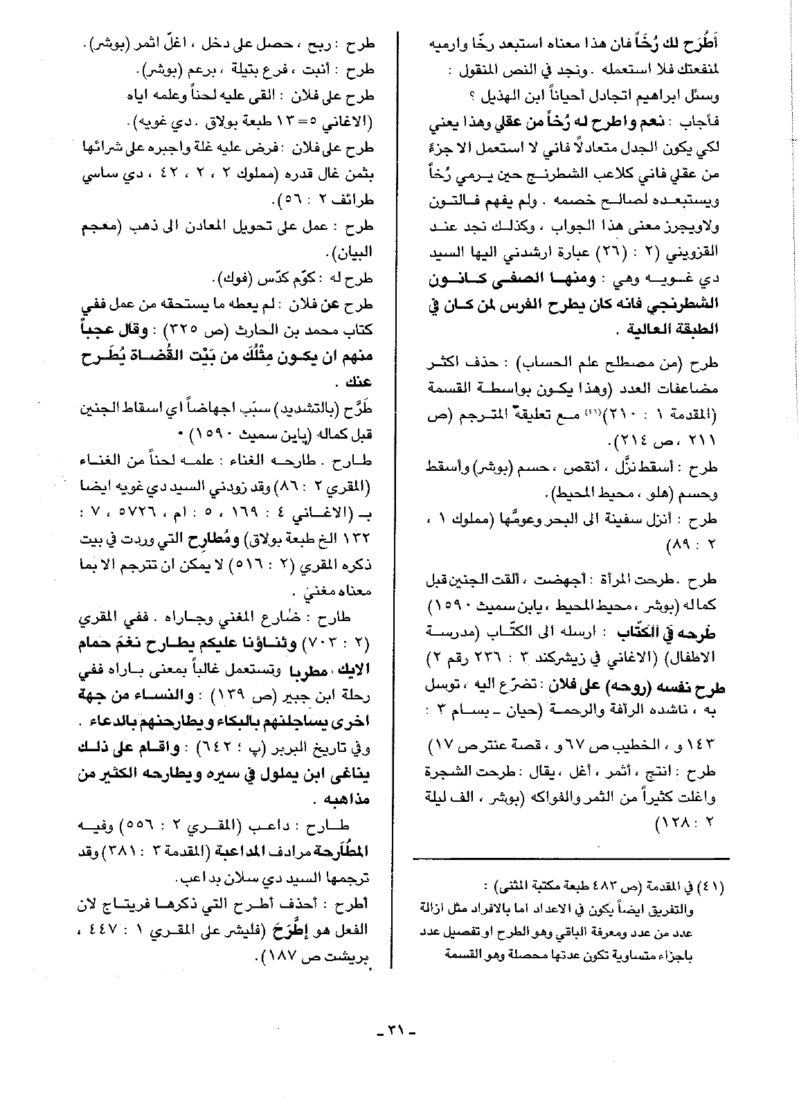 أطرح: أحذف أطرح التي ذكرها فريتاج لان الفعل هو إطَّرَحَ (فليشر على المقري 1: 447، بريشت ص187).