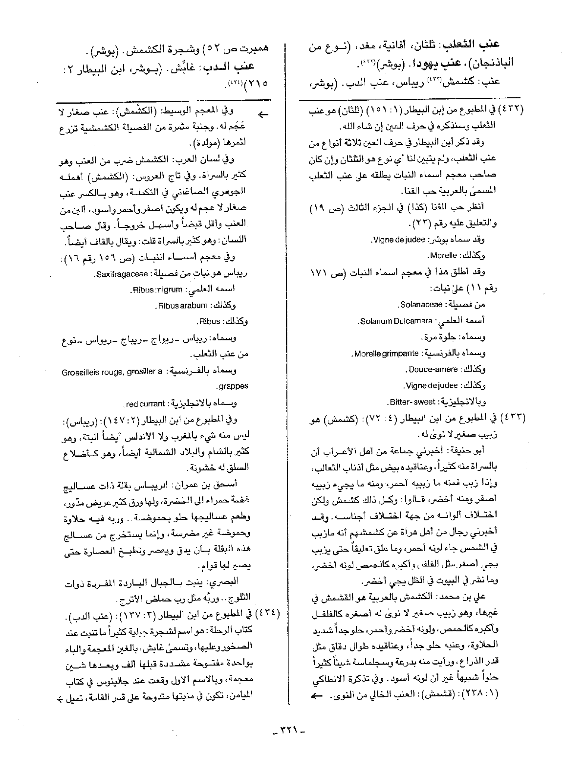 عنب الثعلب: ثلثان، أفانية، مغذ، (نوع من الباذنجان)، عنب يهودا. (بوشر).