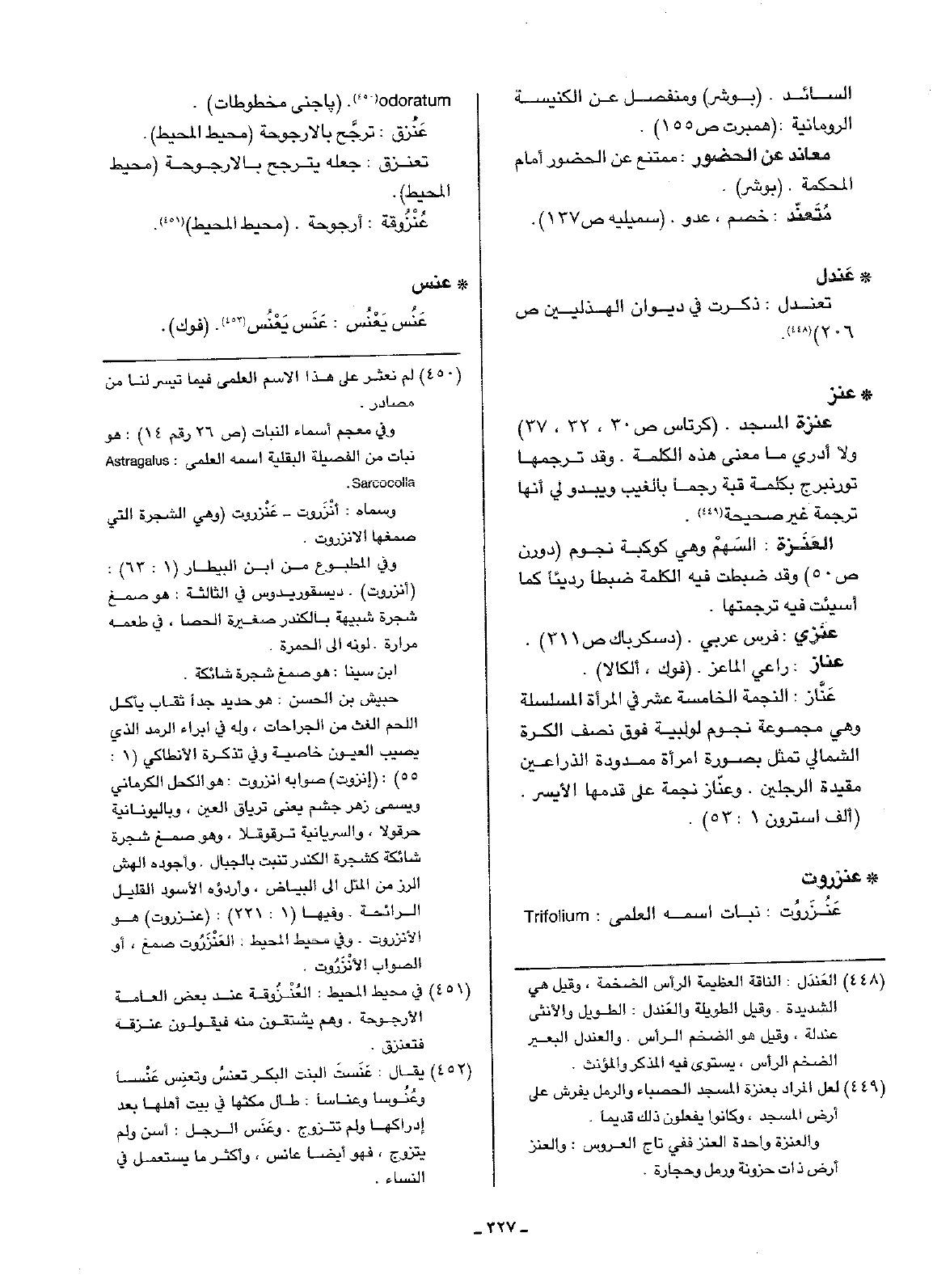 • عنز: عنزة المسجد. (كرتاس ص30، 32، 37) ولا أدري ما معنى هذه الكلمة. وقد ترجمها تورنبرج بكلمة قبة رجماً بالغيب ويبدو لي أنها ترجمة غير صحيحة.