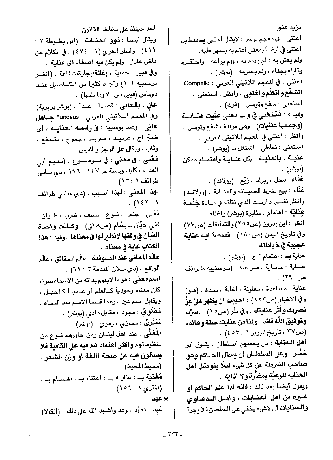 اعتنى: في المعجم اللاتيني العربي: Compello أتشفّع وأتكلّم واعْتنِى. وانظر: استعنى.