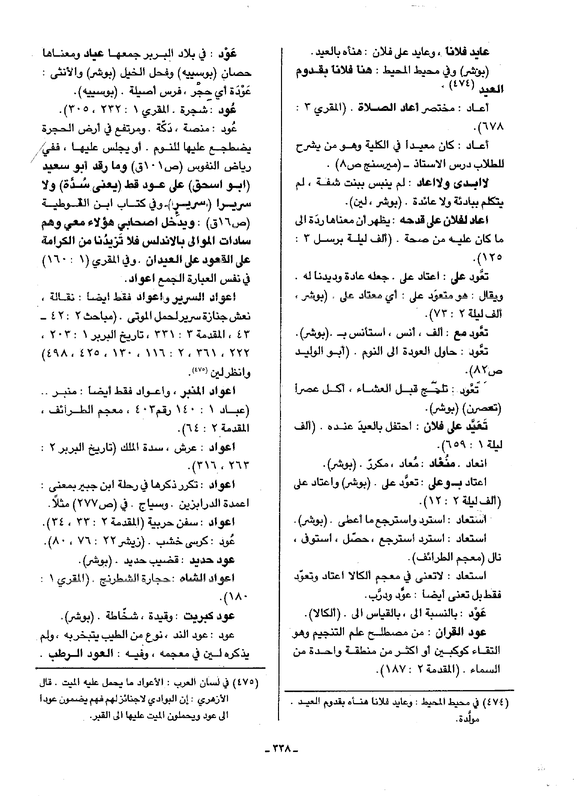أعاد: كان معيداً في الكلية وهو من يشرح للطلاب درس الأستاذ- (ميرسنج ص8).