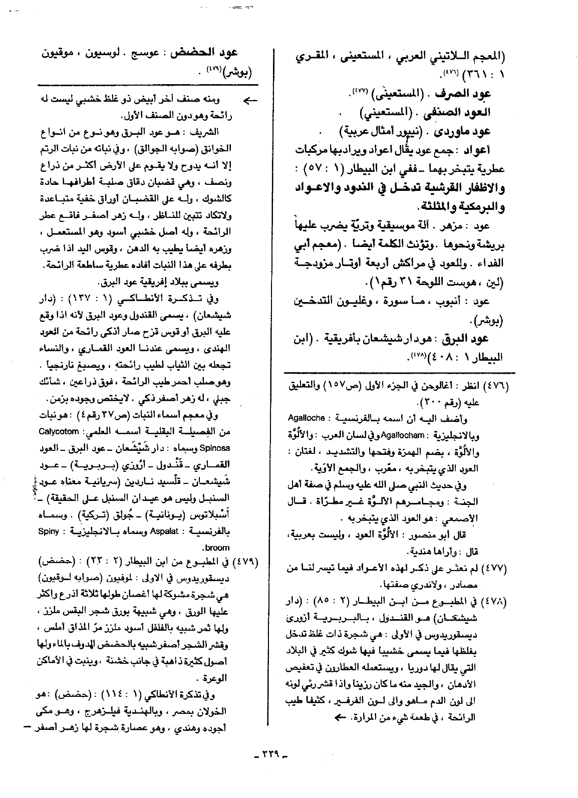 أعواد: جمع عود يقال أعواد ويراد بها مركبات عطرية يتبخر بهما- ففي ابن البيطار (1: 57): والأظفار القرشية تدخل في الندود والأعواد والبرمكية والمثلثة.