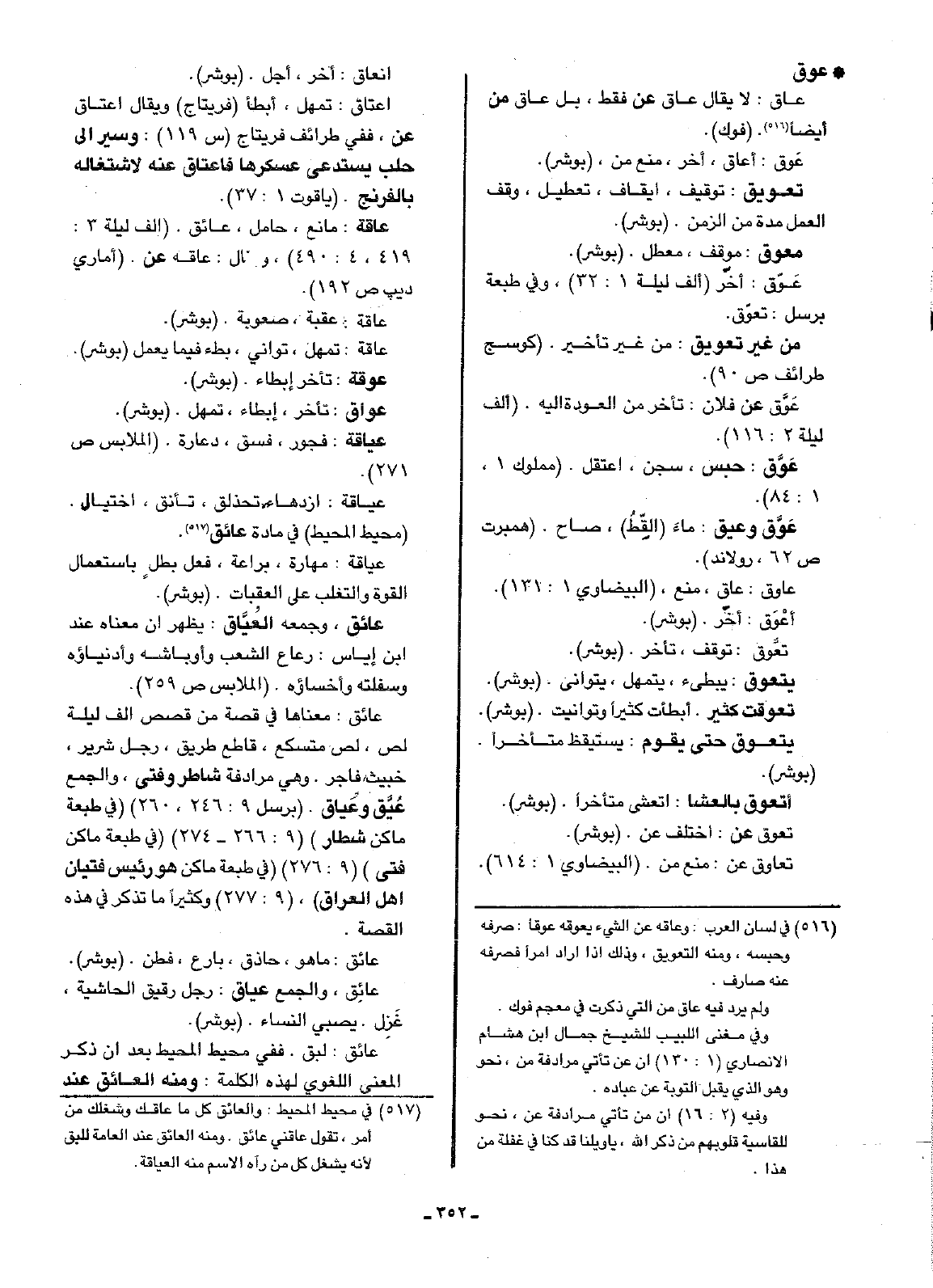 عَوّق: أخر (ألف ليلة 1: 32)، وفي طبعة برسل: تعوّق.