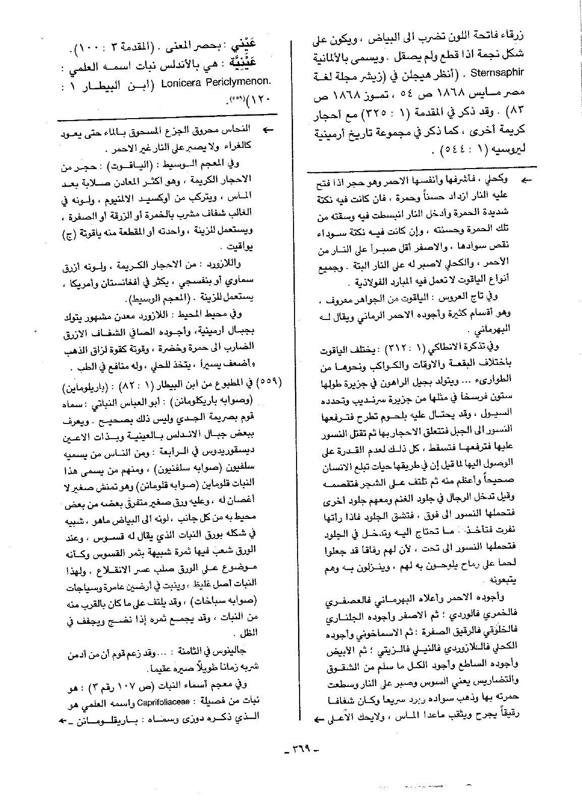 عَيْنِيَّة: هي بالأندلس نبات اسمه العلمي: Lonicera Periclymenon ( ابن البيطار 1: 120).