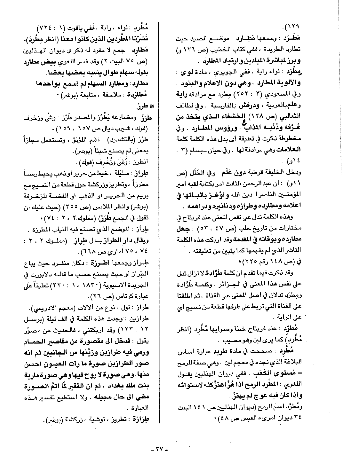 مُطرِّد: عند فريتاج خطأ وصوابها مُطَّرِد (انظر مُطَّردِ) كما يرى لين وهو مصيب.