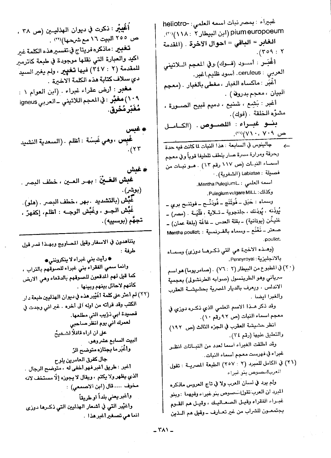 غبيراء: بمصر نبات اسمه العلمي: heliotro- pium europoeum ( ابن البيطار 2: 118).