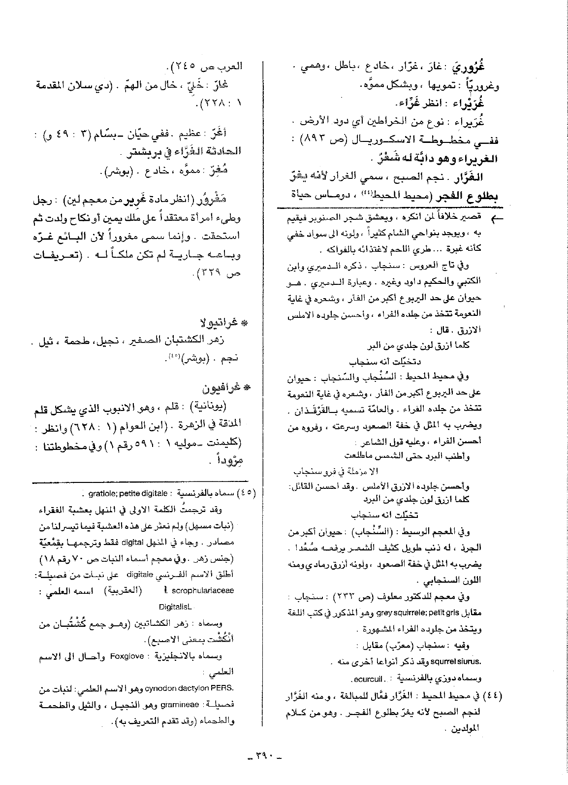 • غرافيون: (يونانية): قلم، وهو الأنبوب الذي يشكل قلم المدقة في الزهرة. (ابن العوام 1: 628) وانظر: (كليمنت- موليه 1: 591 رقم 1) وفي مخطوطتنا: مِرْوداً.