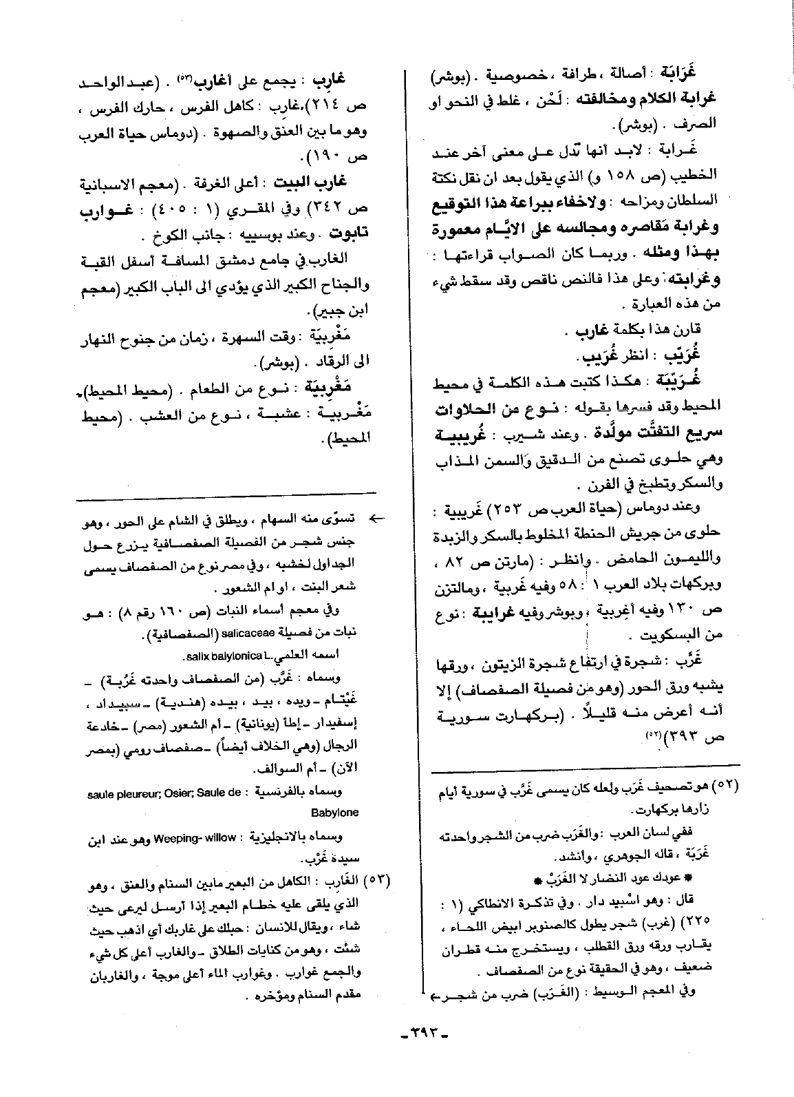 غَرَّب: شجرة في ارتفاع شجرة الزيتون، ورقها يشبه ورق الحور (وهو من فصيلة الصفصاف) إلا أنه أعرض منه قليلاً. (بركهارت سورية ص393).