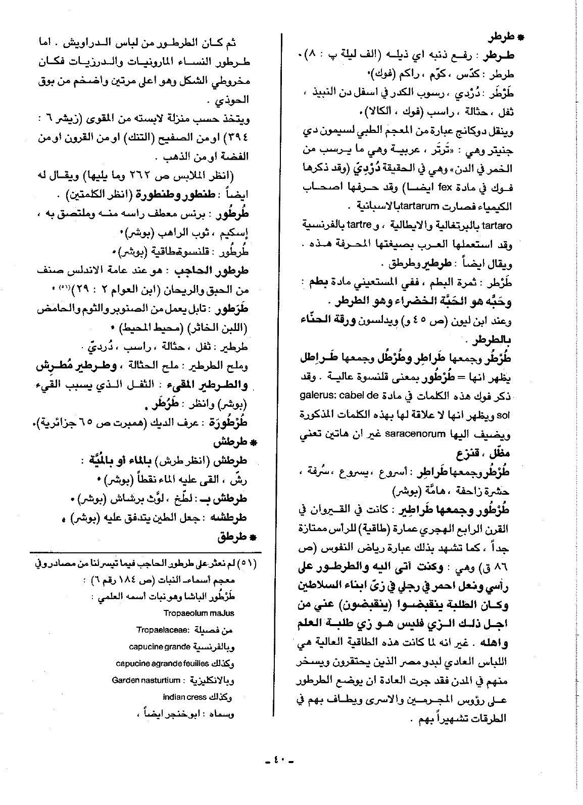(انظر الملابس ص262 وما يليها) ويقال له أيضاً: طنطور وطنطورة (انظر الكلمتين).