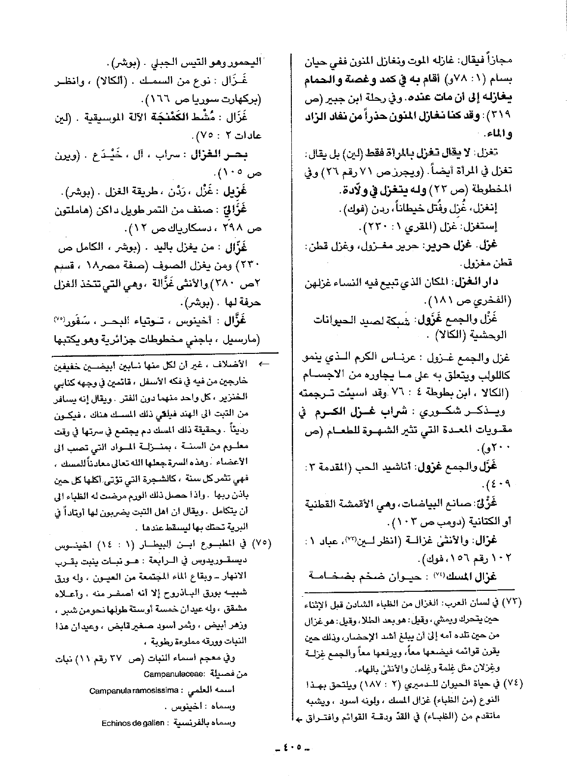 غزال: والأنثى غزالة (انظر لين، عباد 1: 102 رقم 156، فوك).