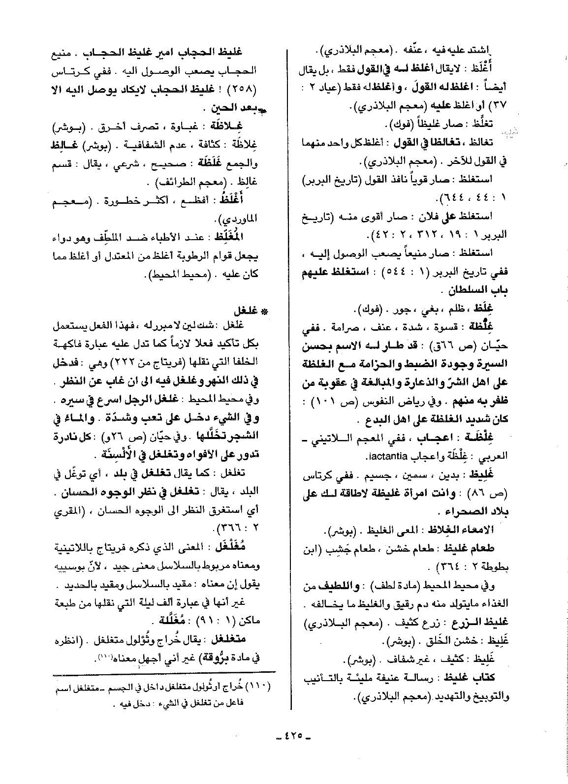 متغلغل: يقال خُراج وثُؤلول متغلغل. (انظره في مادة برُّوقة) غير أني أجهل معناه.
